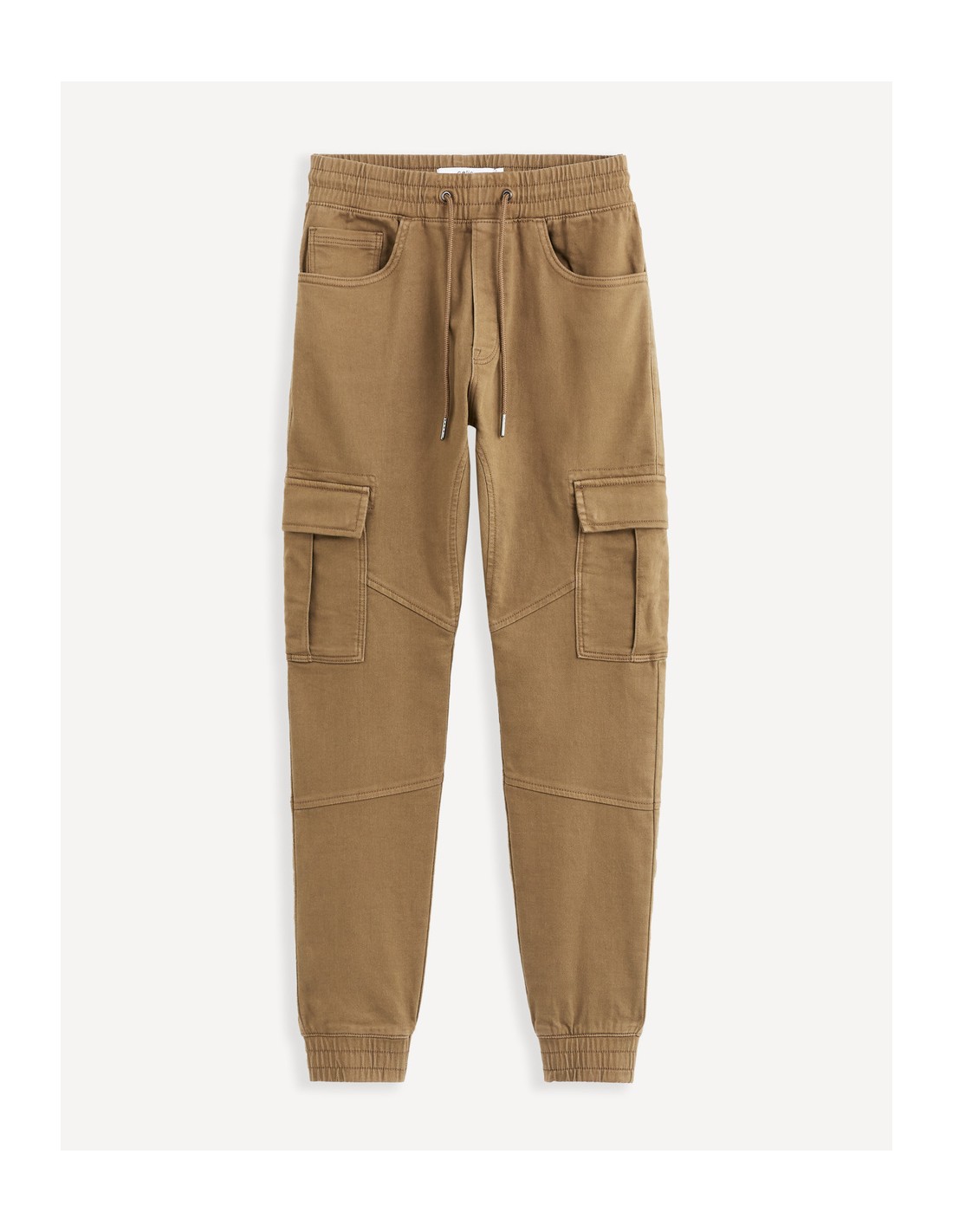 La matière de ce pantalon cargo homme, en coton mélangé stretch, est pensée pour un confort optimal, à assortir à un simple t-shirt. Le pantalon a également des poches à rabat sur les cuisses ainsi qu'une taille et des bas de jambes élastiqués.
