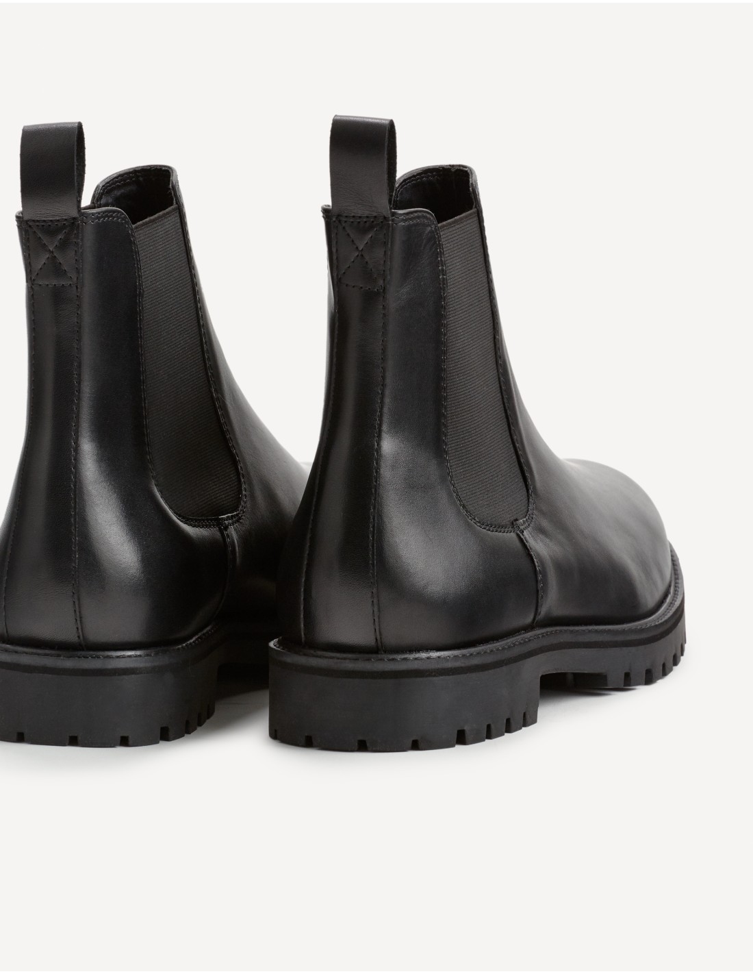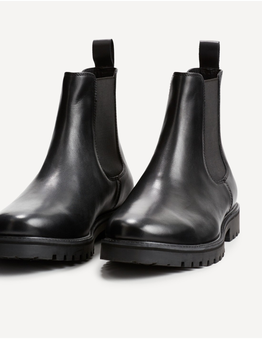 Boots en cuir noir pour homme, mi-haute, parfaites pour compléter votre look.