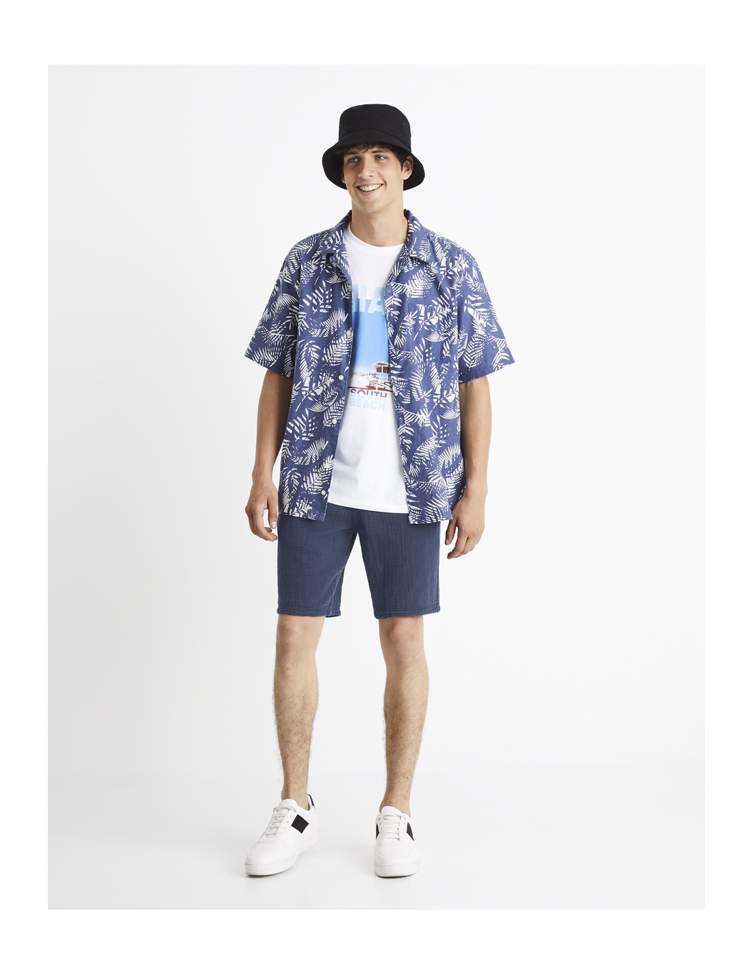 Le tissu 100 % gaze de coton de ce bermuda homme fait tout son confort et sa légèreté. Il est également équipé d'une taille élastiquée avec cordon. Facile à assortir et agréable à porter, il accompagnera très bien une chemise fantaisie ouverte sur un t-shirt.