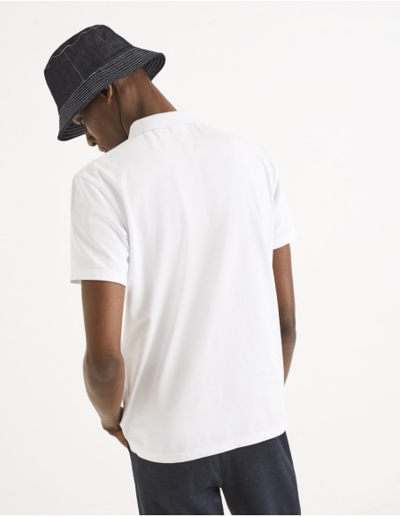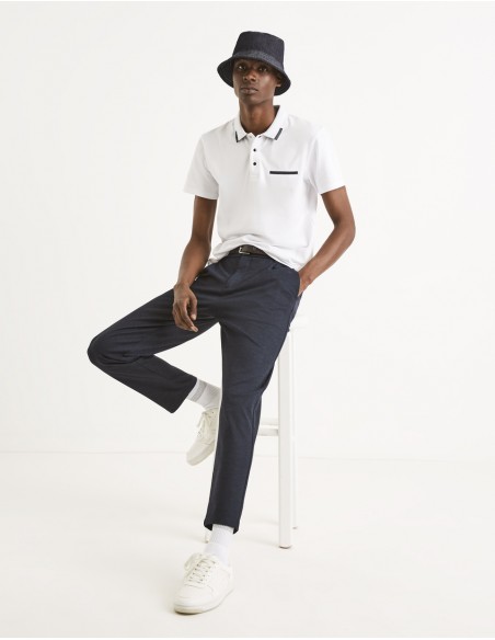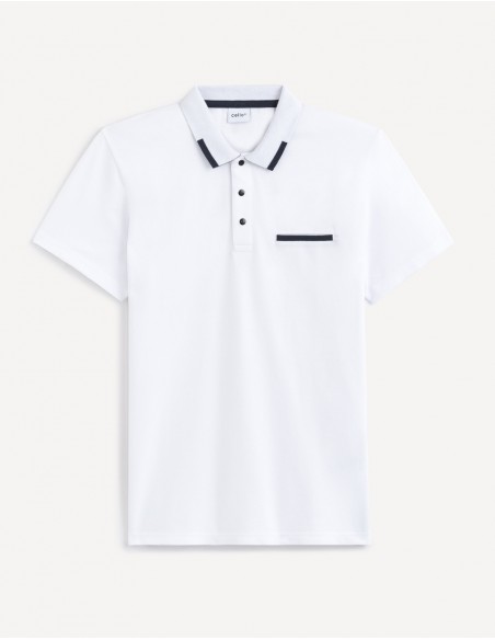 Ce polo manches courtes pour homme en coton organique majoritaire accompagnera parfaitement un pantalon en toile et des baskets. Ses détails contrastées sur le col et sur la poche, et sa fermeture fantaisie avec des boutons snaps apportent du style à une tenue classique.