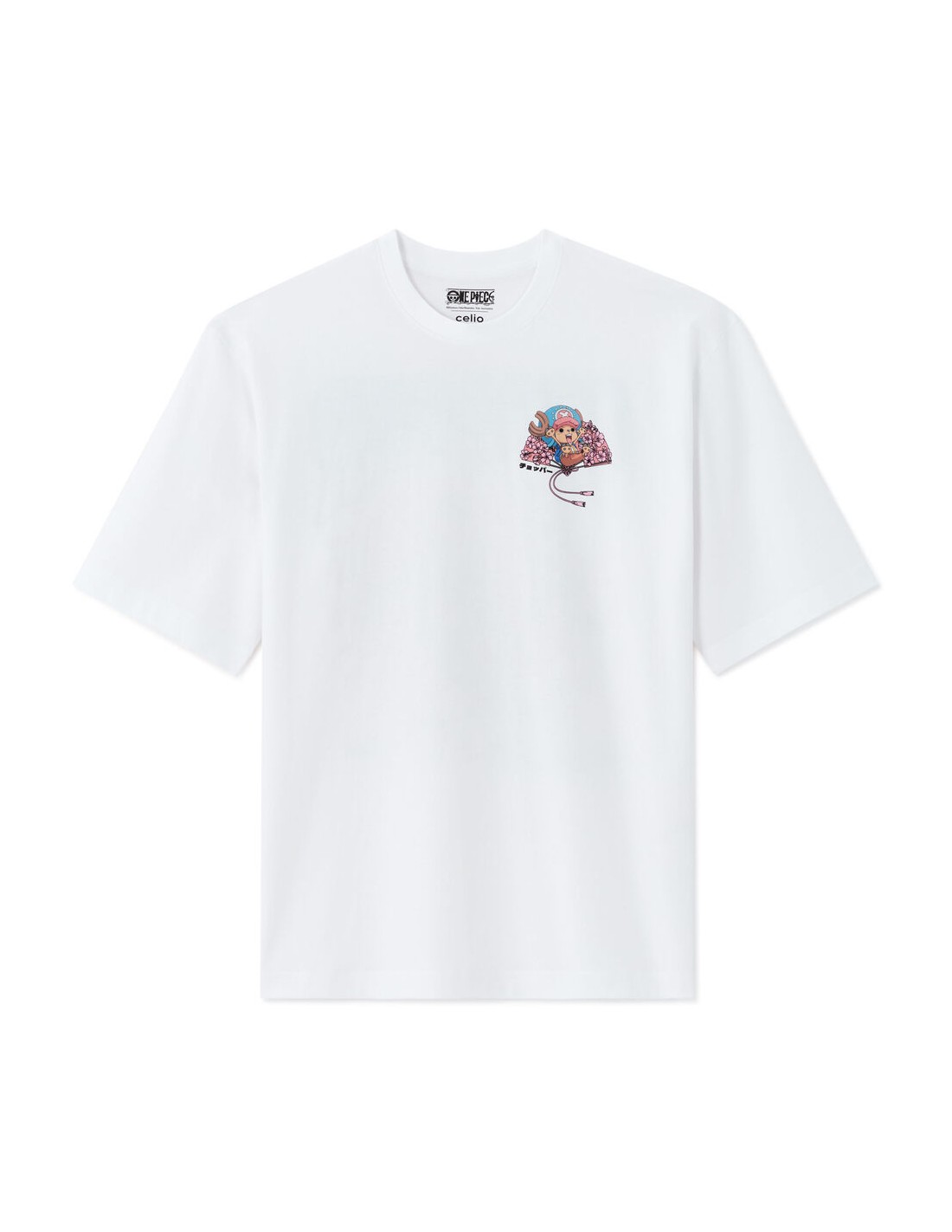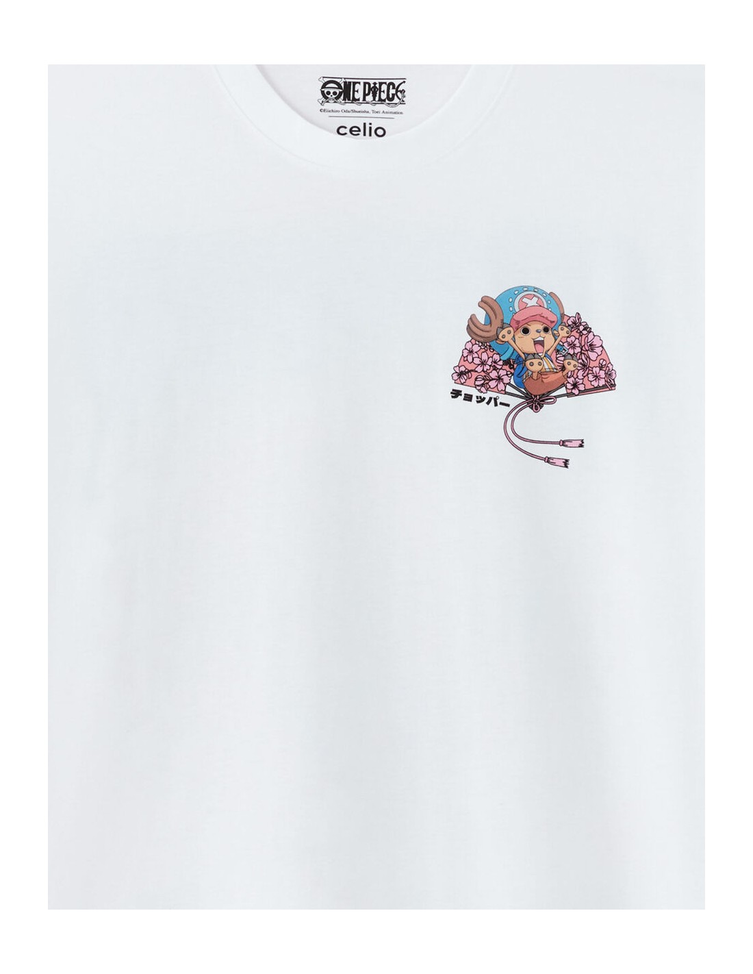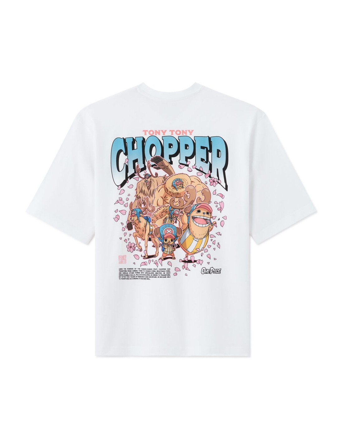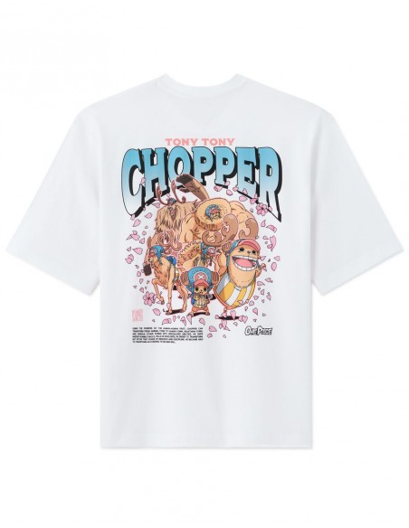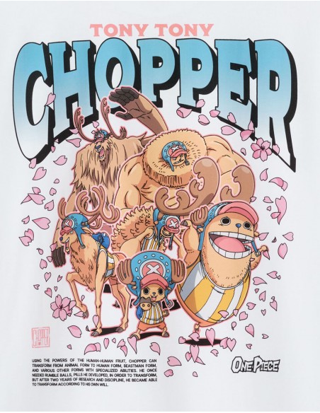 Membre de l’équipage de One Piece, Tony Tony Chopper est un renne ayant mangé le Fruit de l’Humain, ce qui lui a permis de parler, penser et se transformer. Médecin du navire, il est animé par un profond désir d’aider et de sauver des vies, malgré une grande sensibilité et une naïveté touchante. Pour l'homme qui se distingue par son originalité, ce T-shirt One Piece est un incontournable pour affirmer son style. - T-shirt blanc imprimé - 100% coton - Sur le devant, le personnage de Chopper est allongé sur un éventail constitué de fleurs de cerisier - Au dos du produit, il y a Chopper dans toutes ses transformations ainsi que des fleurs de cerisier, son prénom et le titre de l’animé One Piece, ainsi que le wording suivant en anglais : grâce aux pouvoirs du Fruit de l’Humain-Humain - Complétez votre tenue en l'associant à un T-shirt ou un sweat de notre collection.