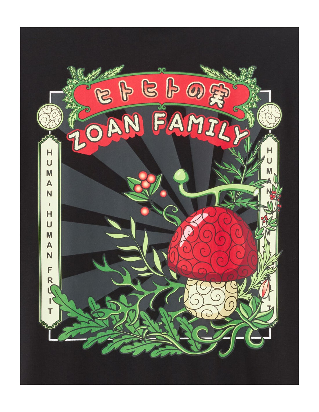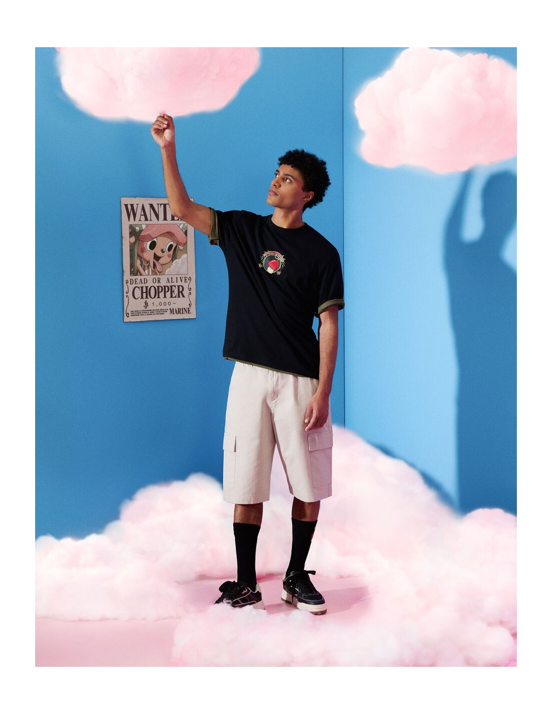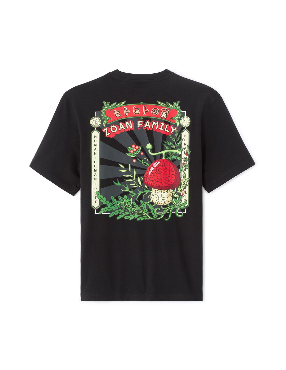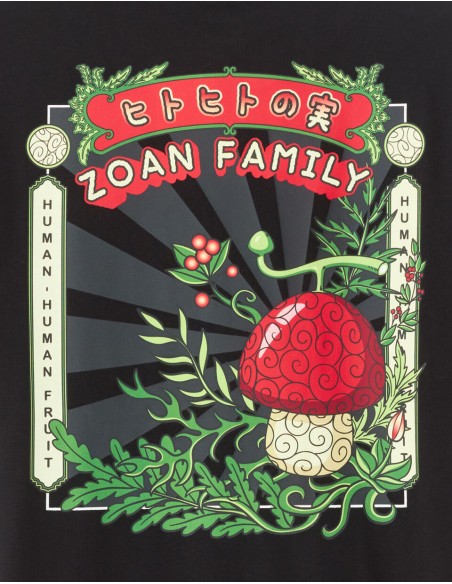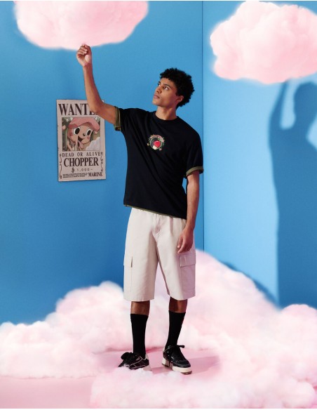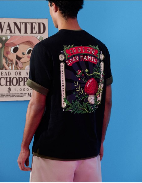 Membre de l’équipage de One Piece, Tony Tony Chopper est un renne ayant mangé le Fruit de l’Humain, ce qui lui a permis de parler, penser et se transformer. Médecin du navire, il est animé par un profond désir d’aider et de sauver des vies, malgré une grande sensibilité et une naïveté touchante. Pour l'homme moderne, plongez dans l'univers captivant de One Piece avec notre nouveau t-shirt. - T-shirt noir Tony Tony Chopper imprimé - Coupe boxy - Col rond - 100% coton - Sur le devant, le fruit du démon de Chopper avec le nom de celui-ci, le Fruit de l’Humain. - Au dos du produit, on retrouve toujours le fruit du démon avec le nom de celui-ci ainsi que la catégorie à laquelle appartient le fruit, la famille des Zoan. On retrouve également de la végétation entourant ces éléments graphiques. - Complétez votre tenue en l'associant à un T-shirt ou un sweat de notre collection.
