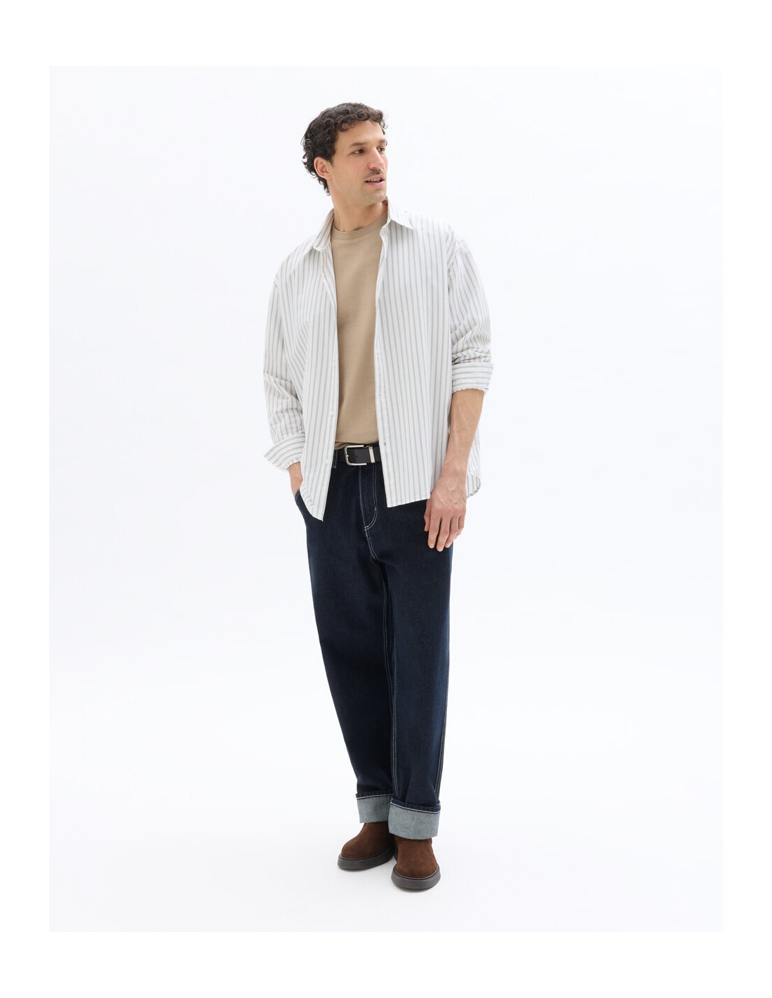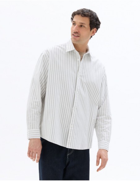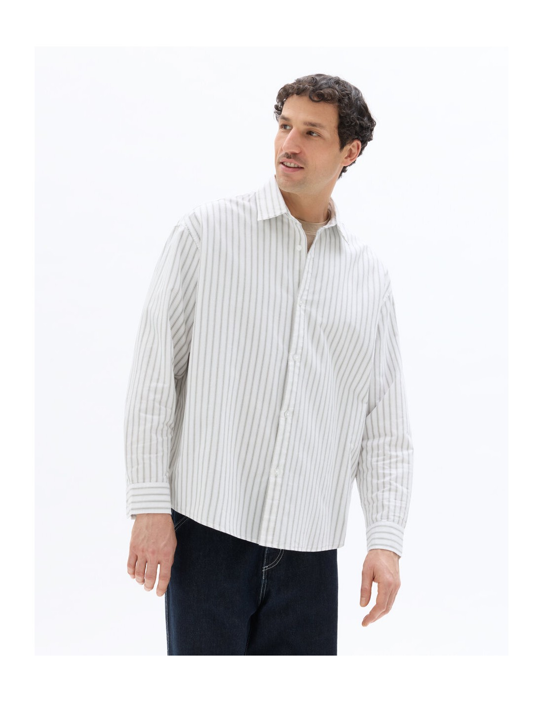 Pour l'homme en quête de style, cette chemise oxford est la pièce maîtresse d'un vestiaire décontracté. - Chemise oxford rayée - Coupe oversize - Manches longues - Col français - Toucher doux - Motif rayé - 100% Coton oxford - Poche plaquée sur la poitrine - À associer avec un pantalon décontracté ou un chino pour un look complet.