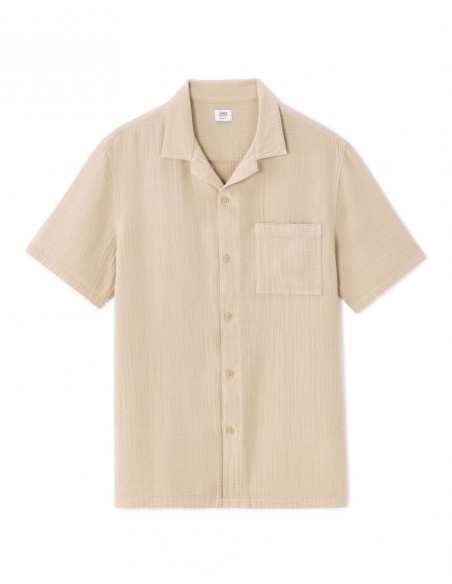 Pour un look décontracté et stylé, adoptez cette chemise homme. - Chemisette unie - Coupe regular - 100% Gaze de coton - Manches courtes - Col cubain - Poche plaquée - A porter avec un pantalon ou un bermuda.