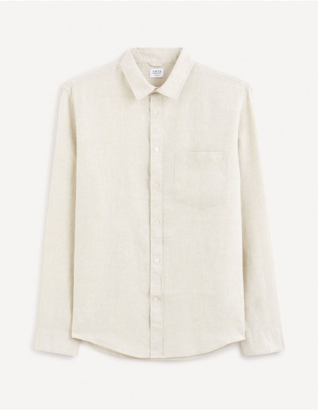 L'élégance et le confort de la chemise homme 100 % lin en font un indispensable de votre dressing. Vous la porterez avec un pantalon en toile ou tout simplement avec un jean. La chemise a une poche poitrine et un col français. Matière naturelle, respirante, idéale pour l'été avec une gamme coloris trés large, des coloris neutres mixés à des coloris frais de saison.