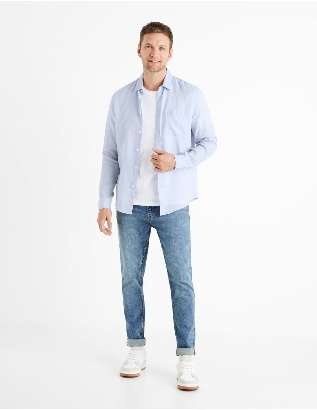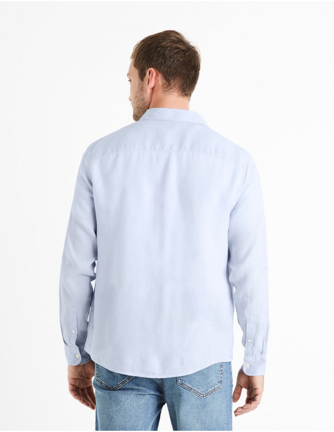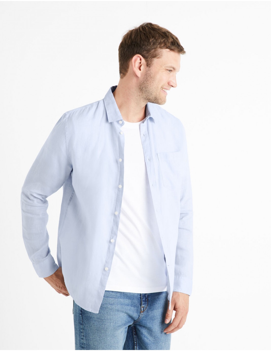 L'élégance et le confort de la chemise homme 100 % lin en font un indispensable de votre dressing. Vous la porterez avec un pantalon en toile ou tout simplement avec un jean. La chemise a une poche poitrine et un col français. Matière naturelle, respirante, idéale pour l'été avec une gamme coloris trés large, des coloris neutres mixés à des coloris frais de saison.