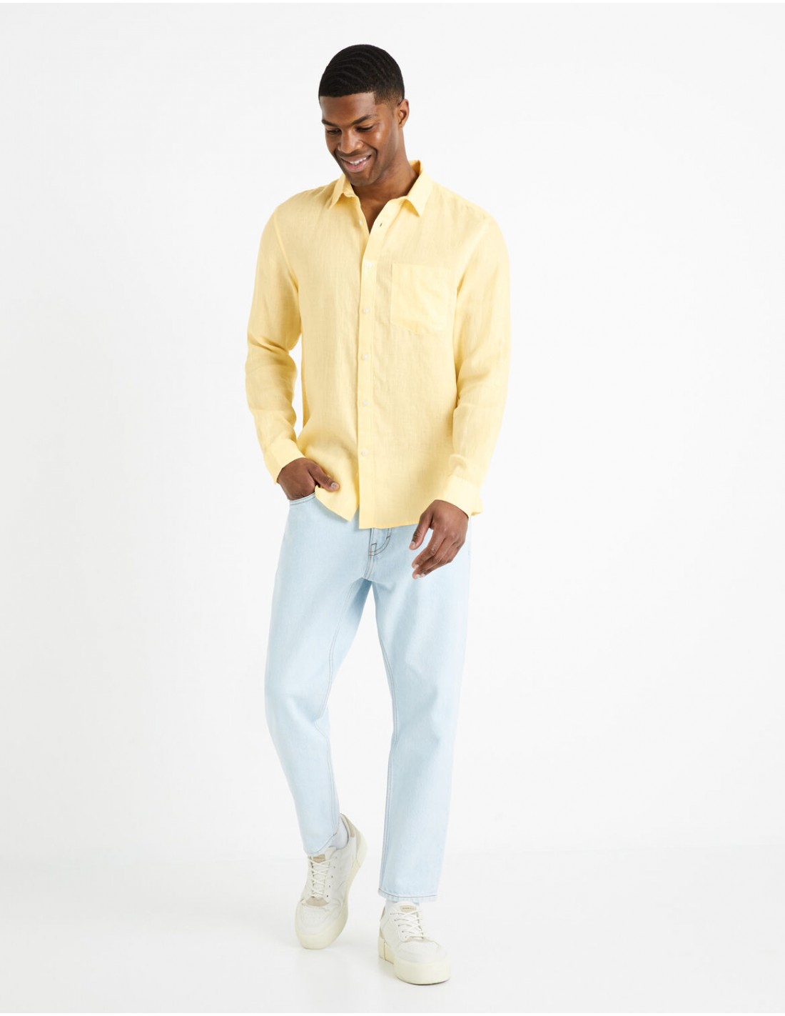 L'élégance et le confort de la chemise homme 100 % lin en font un indispensable de votre dressing. Vous la porterez avec un pantalon en toile ou tout simplement avec un jean. La chemise a une poche poitrine et un col français. Matière naturelle, respirante, idéale pour l'été avec une gamme coloris trés large, des coloris neutres mixés à des coloris frais de saison.