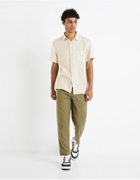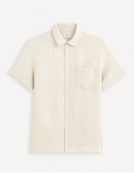 Trouvez votre chemise en lin homme, l'option idéale pour un style décontracté et soigné. Confort et simplicité se rencontrent dans cette pièce polyvalente. - Chemise - Coupe regular - 100% Lin - Thermorégulateur, pour être au frais tout l'été - Manches courtes - Col français - Poche plaquée - A porter avec un pantalon chino ou un bermuda.