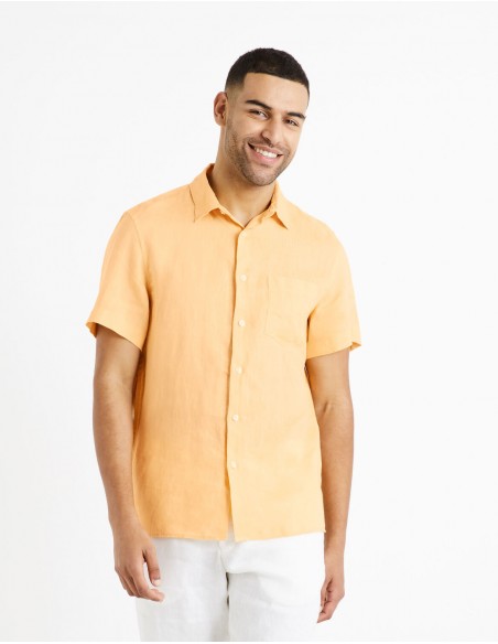 Trouvez votre chemise en lin homme, l'option idéale pour un style décontracté et soigné. Confort et simplicité se rencontrent dans cette pièce polyvalente. - Chemise - Coupe regular - 100% Lin - Thermorégulateur, pour être au frais tout l'été - Manches courtes - Col français - Poche plaquée - A porter avec un pantalon chino ou un bermuda.