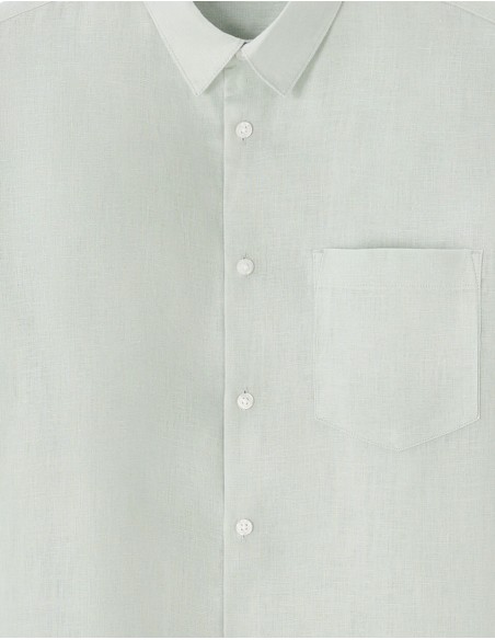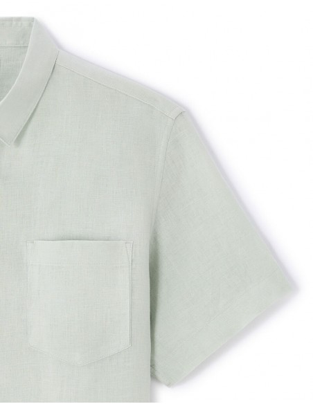 Trouvez votre chemise en lin homme, l'option idéale pour un style décontracté et soigné. Confort et simplicité se rencontrent dans cette pièce polyvalente. - Chemise - Coupe regular - 100% Lin - Thermorégulateur, pour être au frais tout l'été - Manches courtes - Col français - Poche plaquée - A porter avec un pantalon chino ou un bermuda.