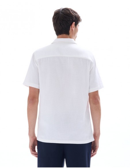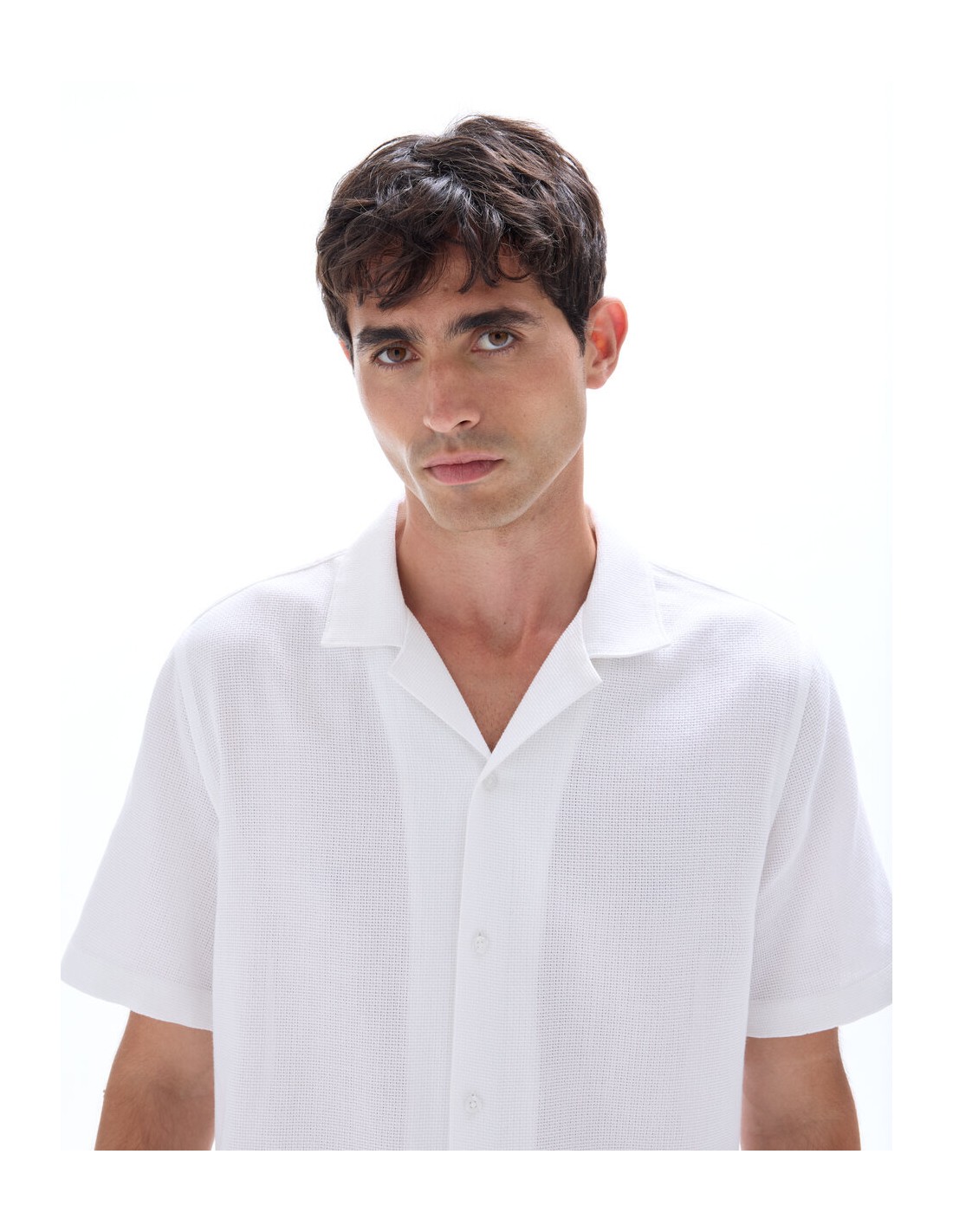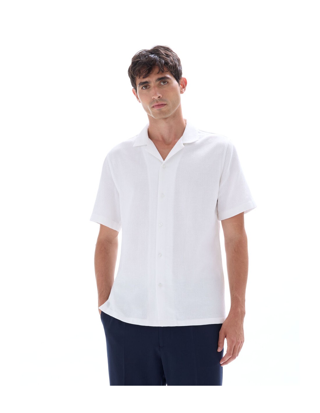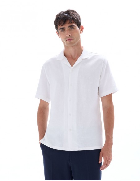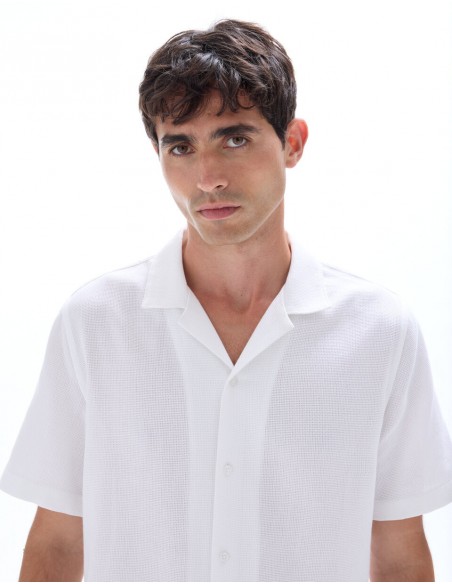 Un essentiel polyvalent pour l'homme au style affirmé. - Chemise fil chinés slubbés - Coupe regular - 100% Coton slubbé - Col français - Manches courtes - À associer facilement avec un pantalon ou un short.