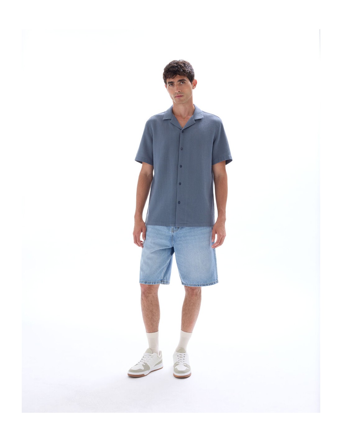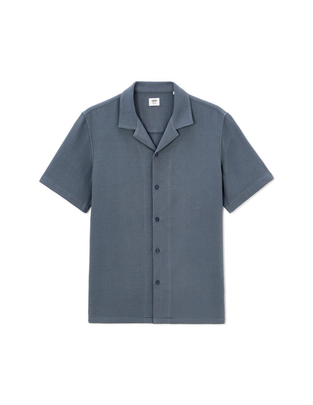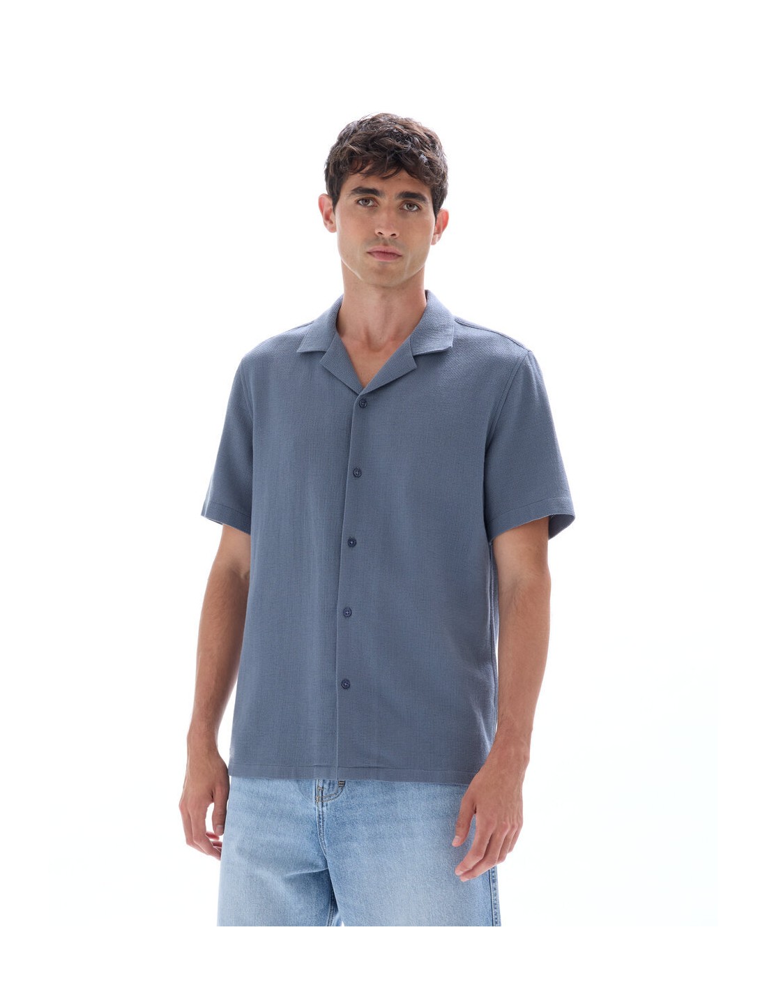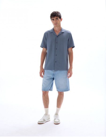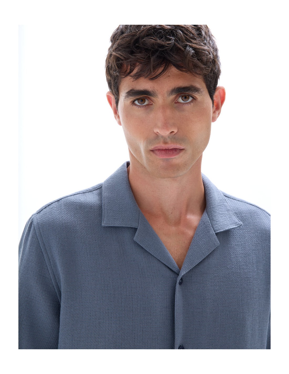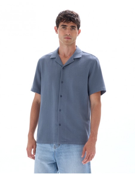 Un essentiel polyvalent pour l'homme au style affirmé. - Chemise fil chinés slubbés - Coupe regular - 100% Coton slubbé - Col français - Manches courtes - À associer facilement avec un pantalon ou un short.