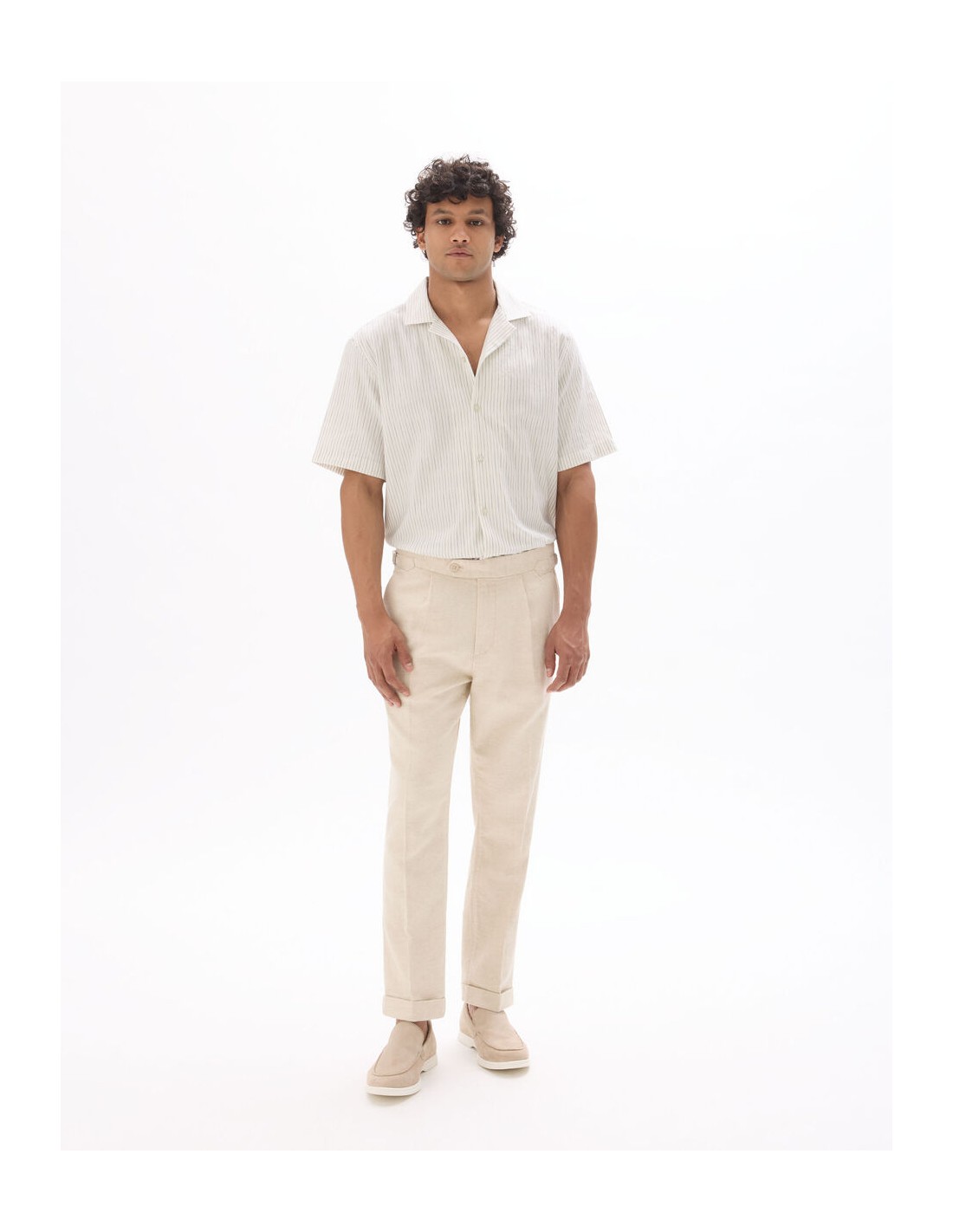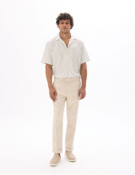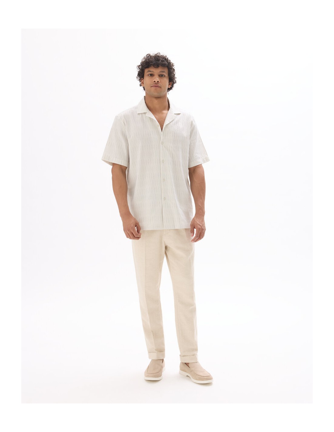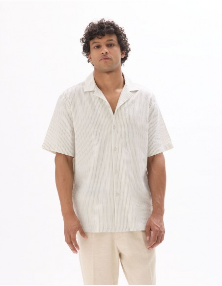 Indispensable pour l'homme moderne, cette chemise est l'alliance parfaite du style et du confort. - Chemise - Coupe regular - En 100% coton - Manches courtes - Col hawaïen - Toucher doux - Fines rayures fils teints À associer facilement avec un pantalon chino ou un bermuda.