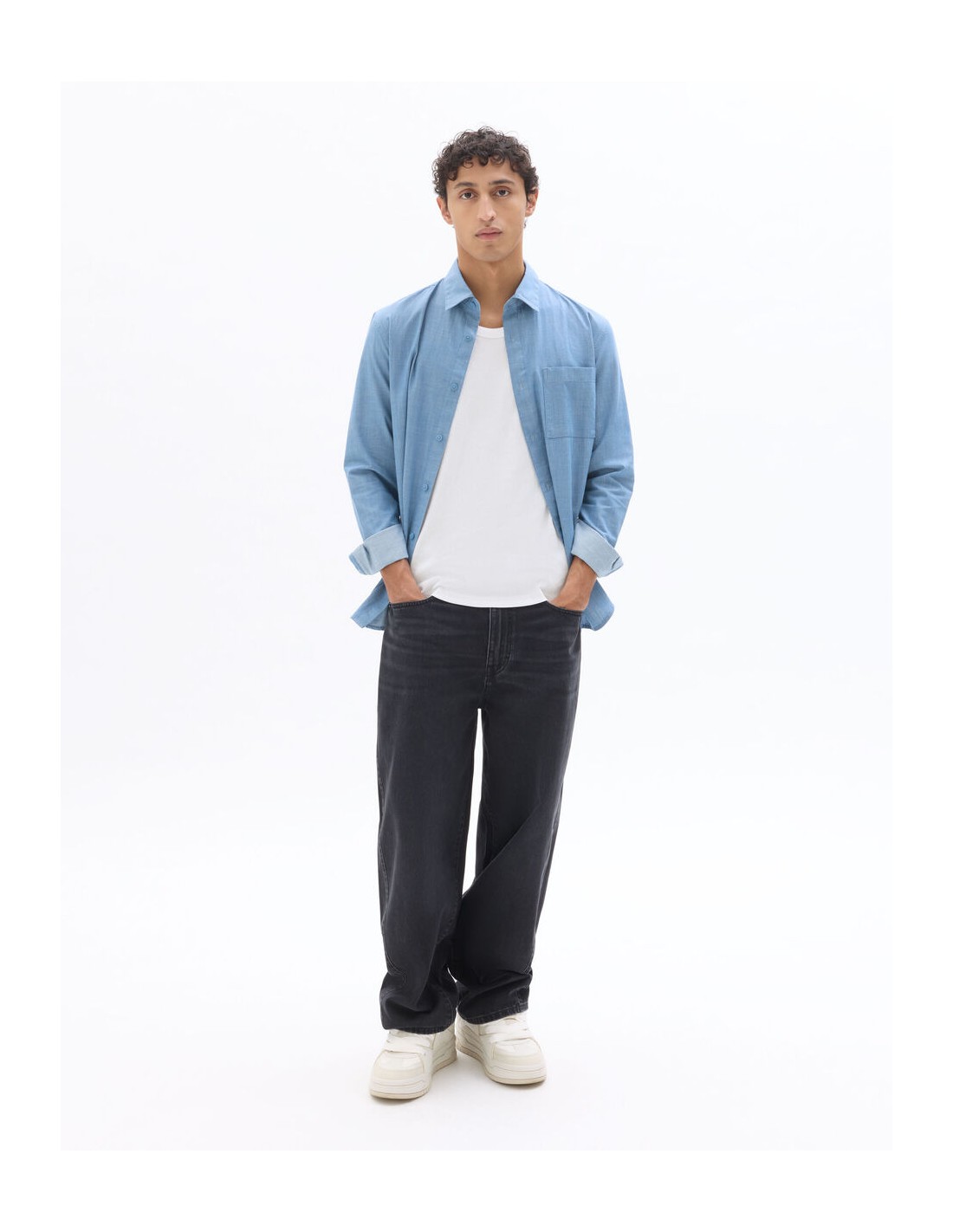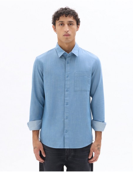 Affirmez votre allure avec cette chemise essentielle pour l'homme, au subtil effet denim, un classique réinventé pour un style sans effort. - Chemise effet jean - Coupe regular - Manches longues - Col français - Toucher doux - Poche plaquée sur la poitrine - Idéale à associer avec un pantalon casual ou un chino pour un ensemble raffiné.
