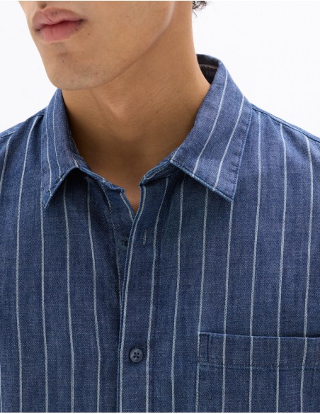 Affirmez votre allure avec cette chemise essentielle pour l'homme, au subtil effet denim, un classique réinventé pour un style sans effort. - Chemise effet jean - Coupe regular - Manches longues - Col français - Toucher doux - Poche plaquée sur la poitrine - Idéale à associer avec un pantalon casual ou un chino pour un ensemble raffiné.