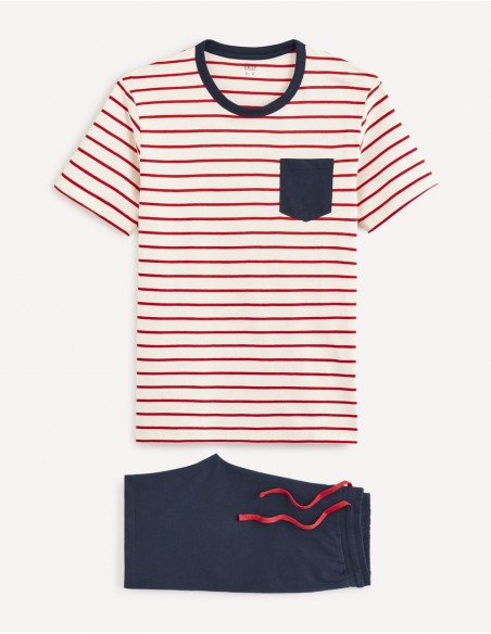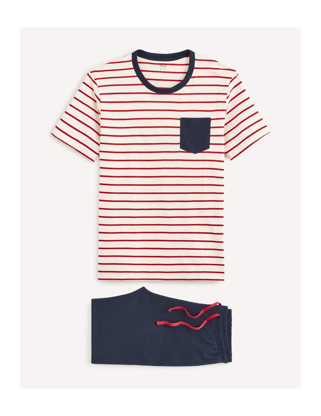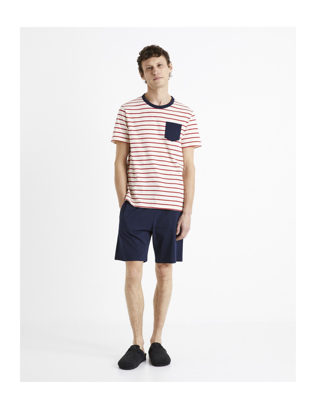 Pyjama manches courtes à rayure avec poche plaquée et short en jersey. T-SHIRT: 100% coton BAS: 100% coton