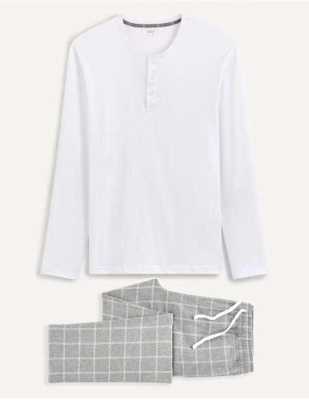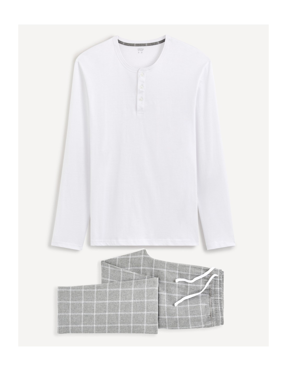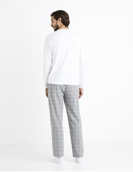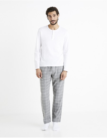 Pyjama manches longues col tunisien et pantalons à carreaux en flannel T-SHIRT: 100% coton BAS: 100% coton