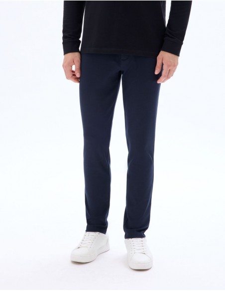 Affirmez votre style avec ce pantalon chino, idéal pour un look à la fois élégant et décontracté. - Pantalon chino maille - Coupe slim - Toucher maille - Fermeture zippée avec bouton - Poches italiennes - Complétez votre tenue avec une ceinture en cuir et des chaussures assorties.