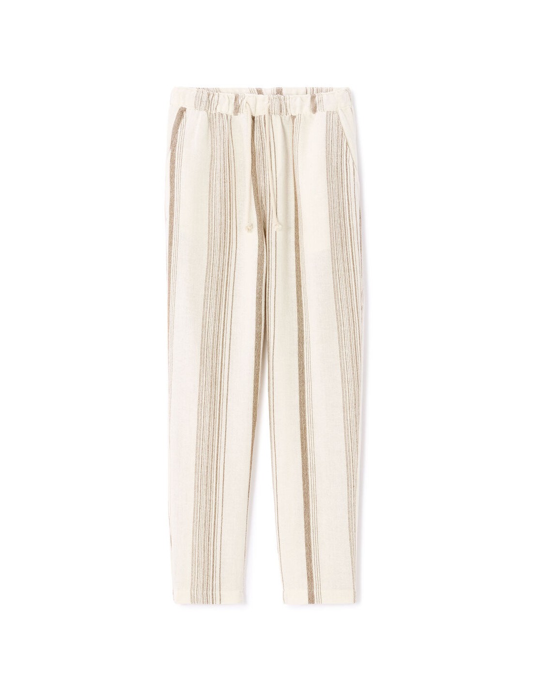 Adoptez ce pantalon pour homme, parfait pour un style à la fois élégant et décontracté, idéal pour la saison chaude. - Pantalon à rayures - Coupe straight - Effet de texture - Fermeture avec cordon de serrage - Imprimé rayé - Poches italiennes - Complétez votre look avec une chemise légère pour un style estival impeccable.