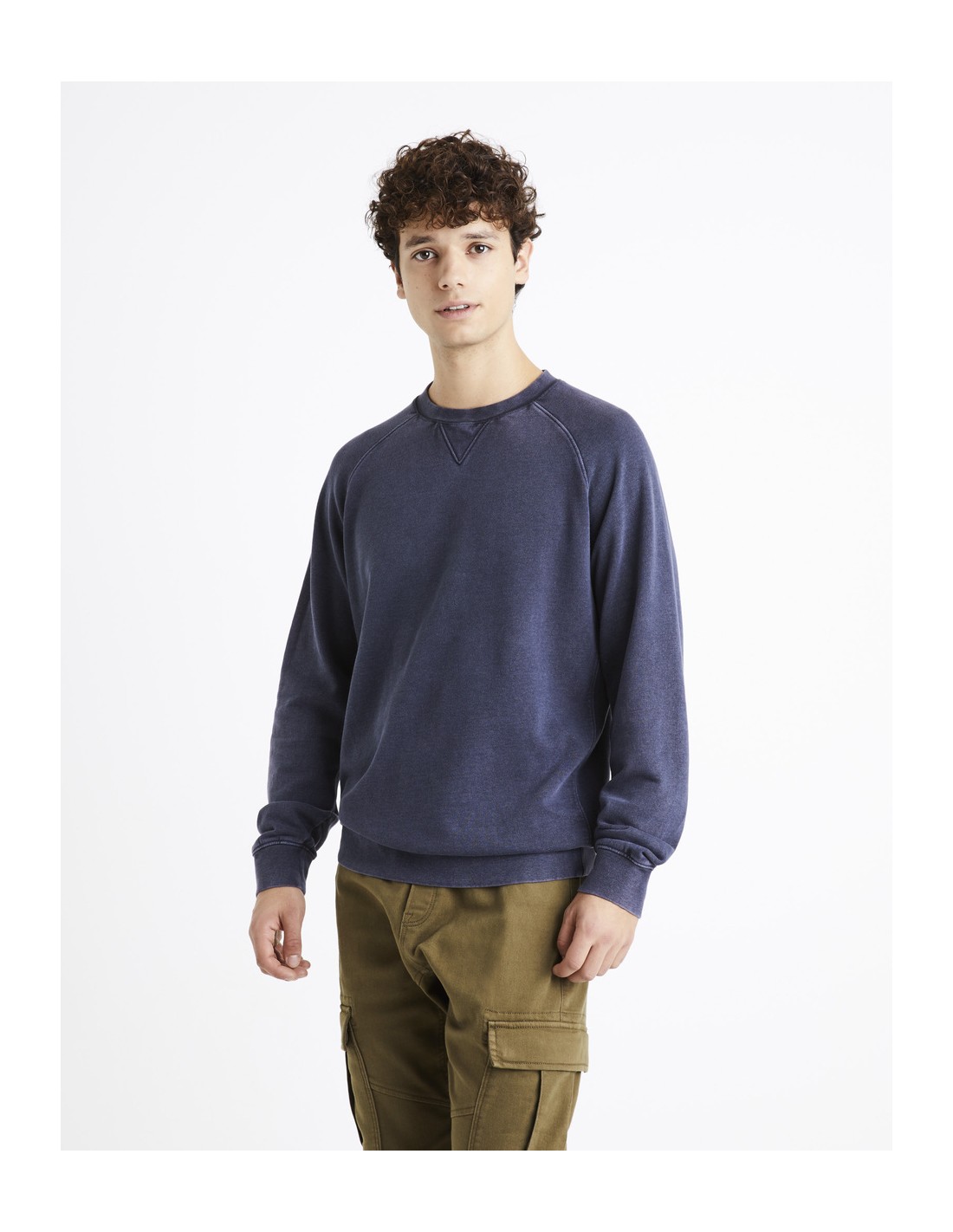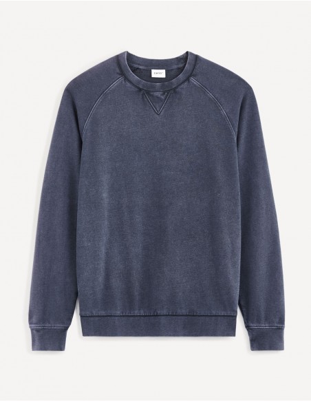 Sweatshirt raglan avec col rond et modestie, en french terry.Le traitement - acide wash - réalisé sur le tissu lui confère un aspect authentique et unique qui peut amener à des variations de couleur d'un produit à l'autre.